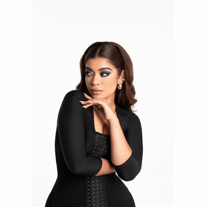 Alta compresión y control del abdomen, efecto reloj de arena. Faja con Brassier tipo Posquirúrgico Cobertura total de espalda, ayuda a mejorar la postura evitando el dolor lumbar. Refuerzo en la zona abdominal para mayor Tummy Control. Es ideal para la recuperación postquirúrgica (etapa 2, 2 0 3 semanas después de la cirugía) o de uso diario para definir la silueta. Estiliza abdomen, cintura y piernas. Mangas hasta los codos para moldear y ayudar a desinflar en lipoescultura de brazos. Su diseño incluye varillas que generan mayor compresión y evitan pliegues en los laterales de la faja y el moldeo abdominal, Recomendada para procedimientos como abdominoplastia, liposucción, BBL, Mommy Makeover, o como soporte para tratamientos moldeadores y de perdida de peso. La cobertura total en la espalda ayuda a mejorar la postura evitando dolores lumbares. Diseño ergonómico en los hombros. Efecto levanta glúteos.